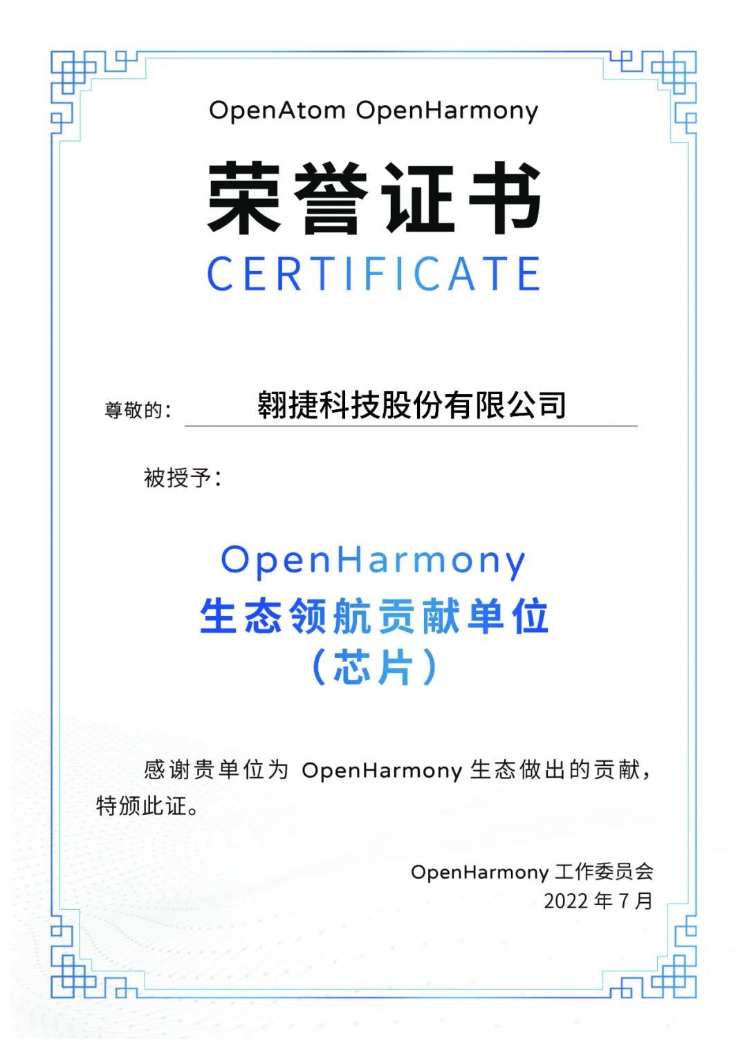6686科技荣获 “OpenHarmony 生态领航孝顺单位(芯片)” 奖,,,,,,,,共筑昌盛生态
